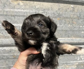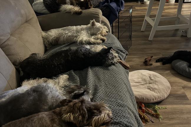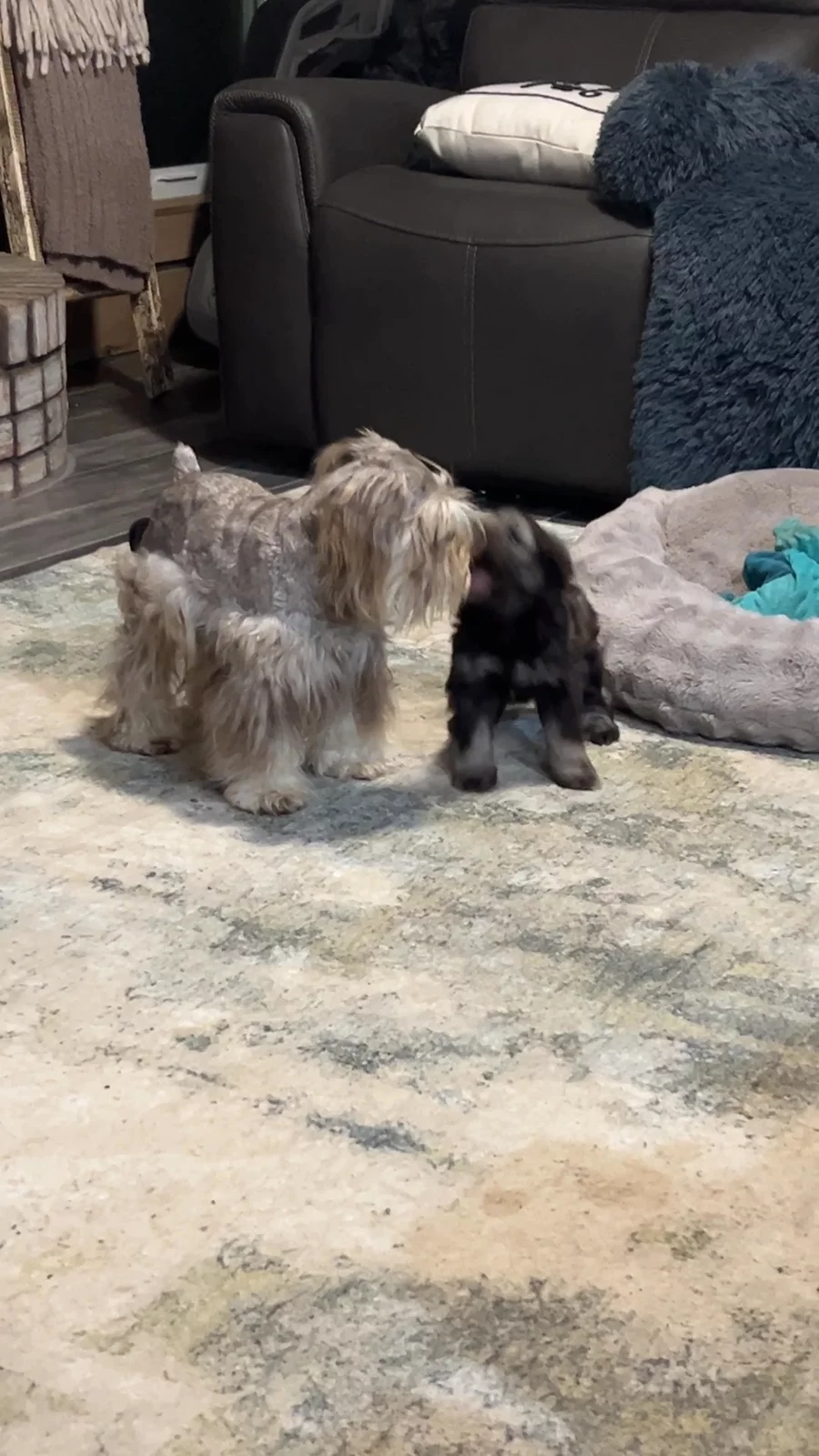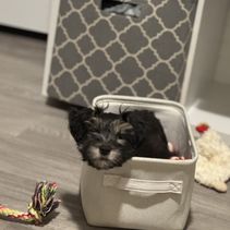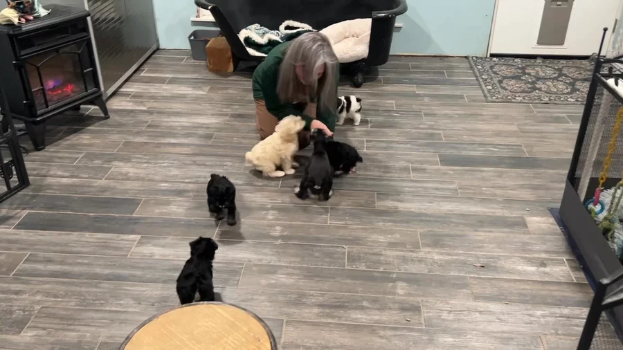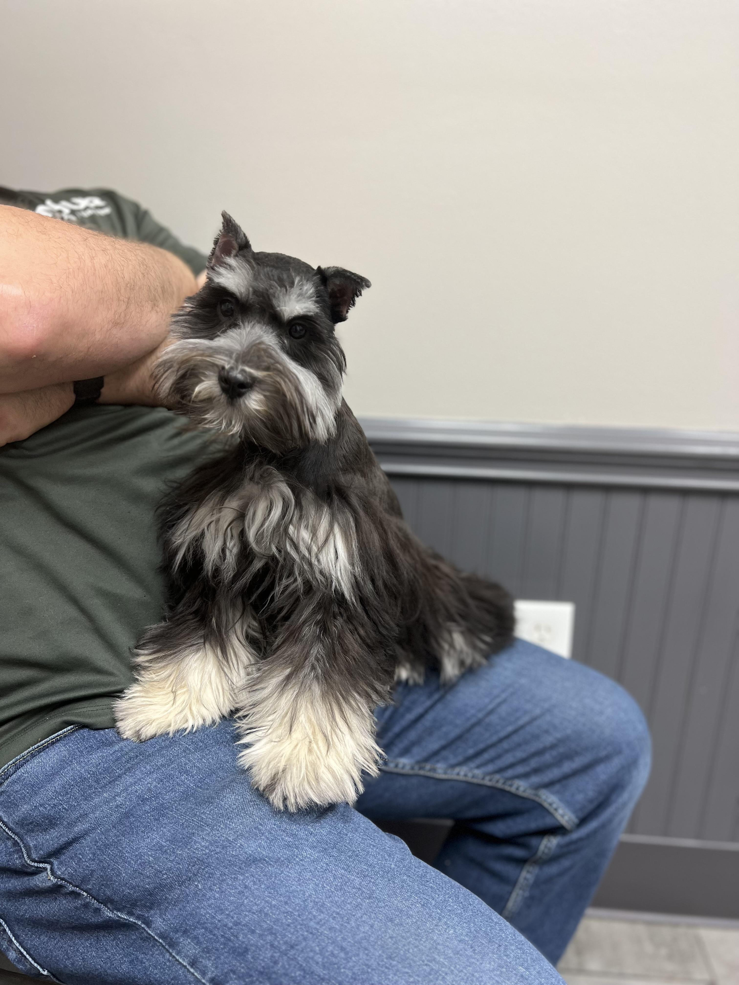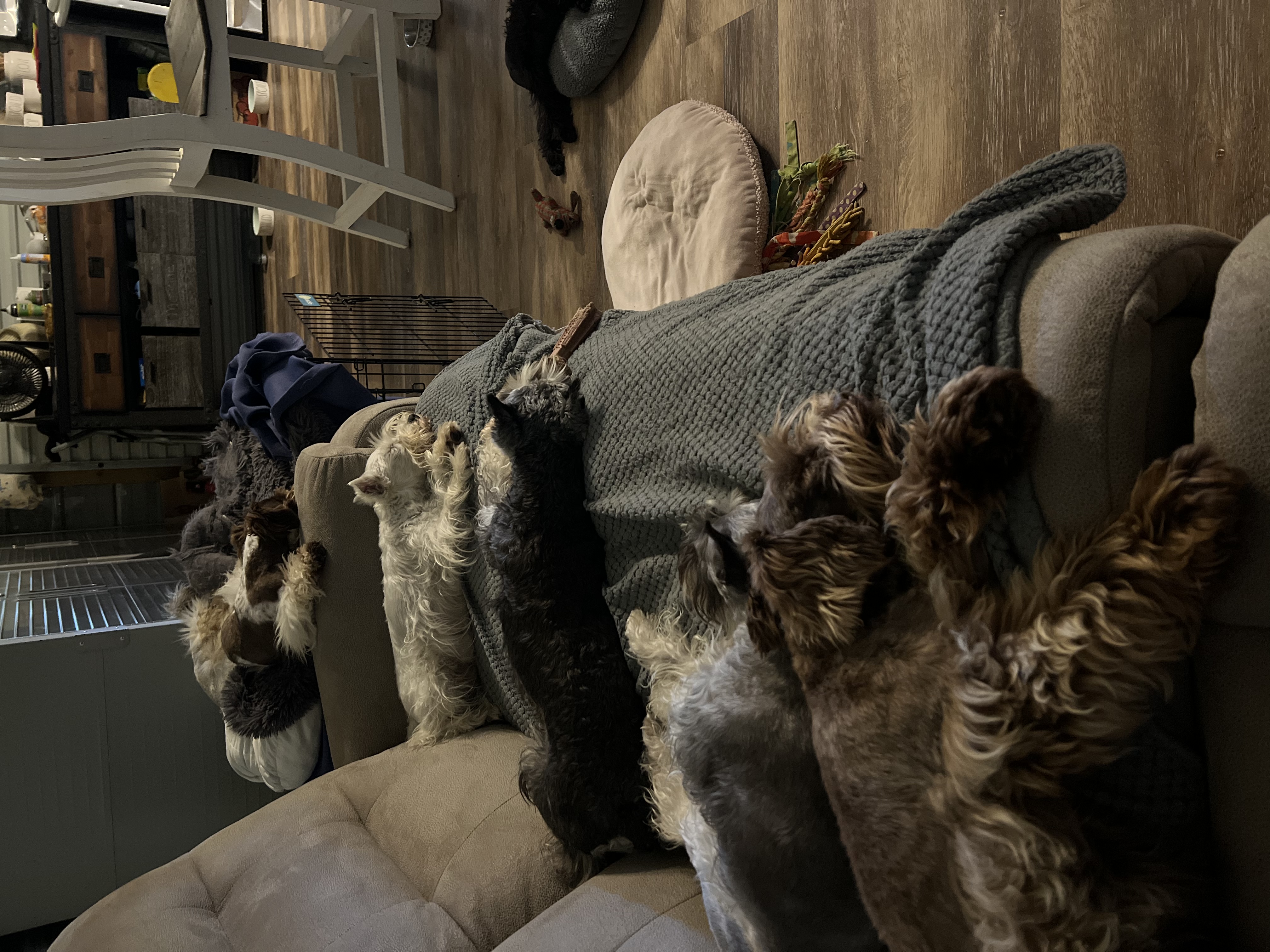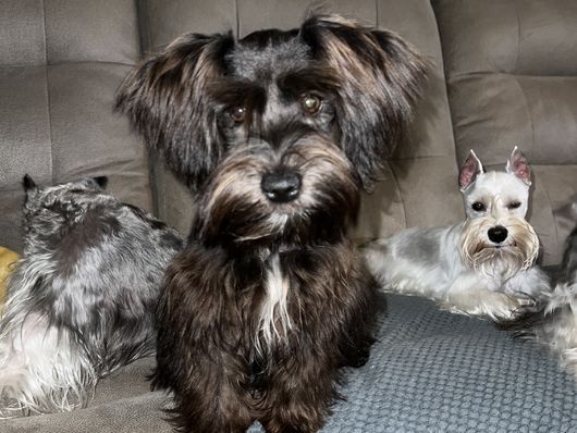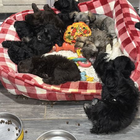 I had a miniature schnauzer for 14 years and had to put him to sleep. The hardest day ever! After losing him I absolutely needed another one. And then another and another. 😁 So…there started my breeding program. I have bred Rotties and English mastiffs I the past so small dogs are big change.