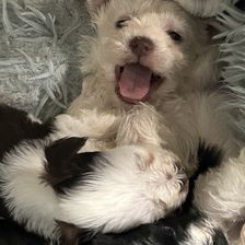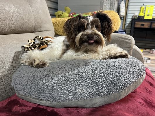 Maggie is a tiny little momma with the sweetest personality. She loves her momma and is her momma’s service dogs twin so there may be a little bias going on. She has one of the most gorgeous coats and absolutely loves to play even if it’s all by herself.