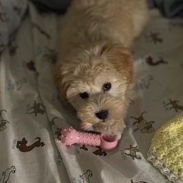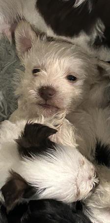 We got our little boy from Daphne and he is the most perfect little puppy there is. He is so loving, great with all ages, and you can definitely tell that he was exposed to different things before he was sent to our home. Daphne was wonderful to work with, provided us with pictures week by week until we got our puppy, and answered so many questions I had as a first time puppy parent. I could not recommend Daphne more, and definitely keep her in mind when looking for your puppy!