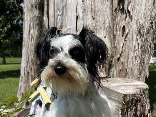 Tilly is a female Miniature Schnauzer. Carefully selected as a great representative of her breed, Daphne decided to make her part of their program. Daphne has passed Good Dog’s screening process, which involved a review of their breeding practices, environment, and the mental and physical health of their dogs.