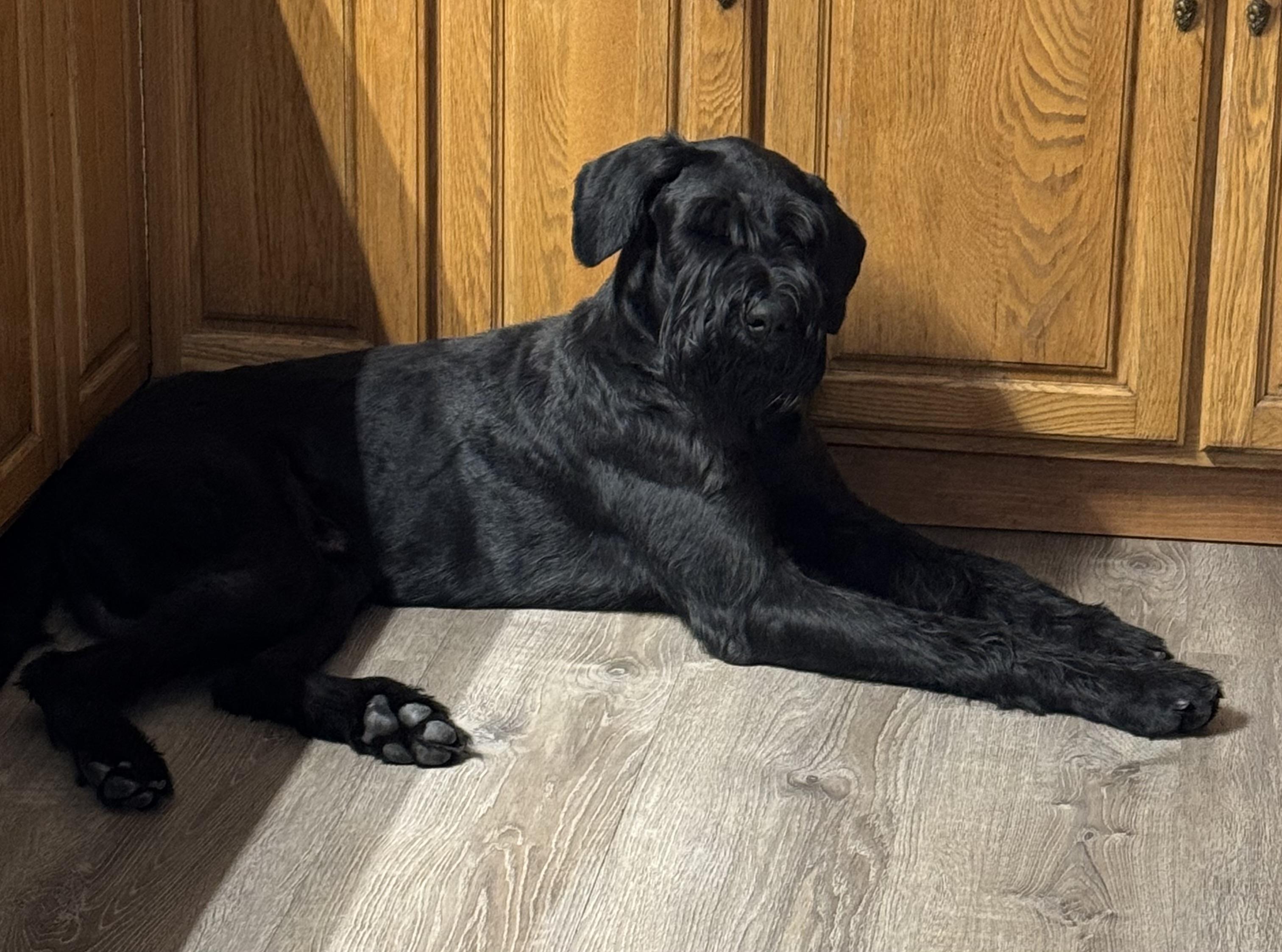 My mom was a breeder of miniature schnauzers when I was growing up and I thoroughly enjoyed the puppies! I bred Minis for 9 years and have now been breeding giants for 10 years. All my females and males live with me! I love that I know my giants well and understand the temperament they will produce in their puppies. I have been blessed with an amazing giant family.