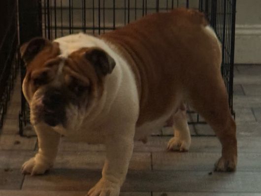 Oneida is a female Bulldog. Carefully selected as a great representative of her breed, Peter decided to make her part of their program. Peter has passed Good Dog’s screening process, which involved a review of their breeding practices, environment, and the mental and physical health of their dogs.