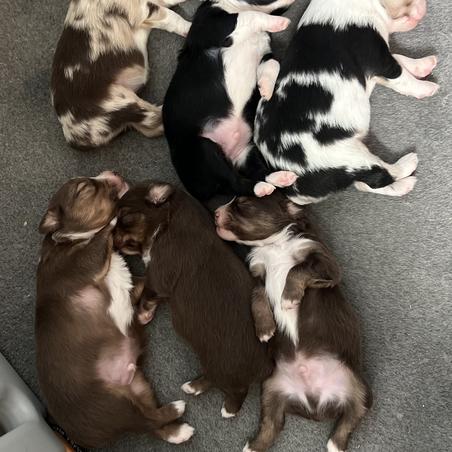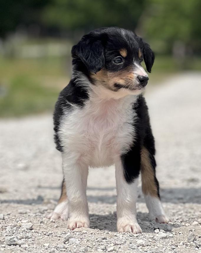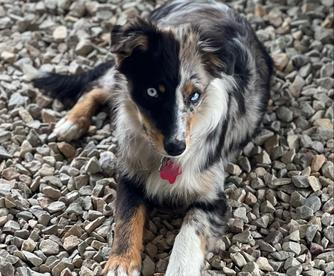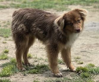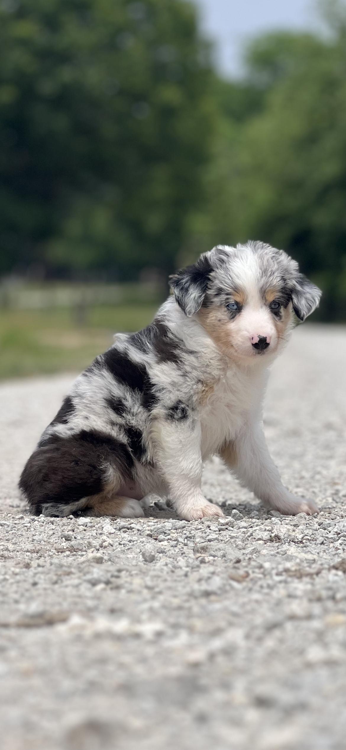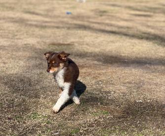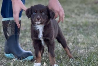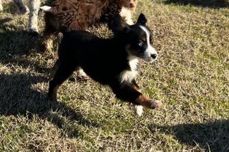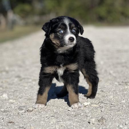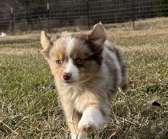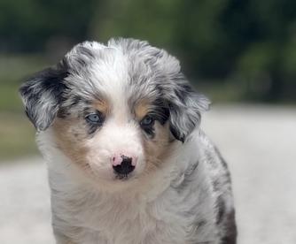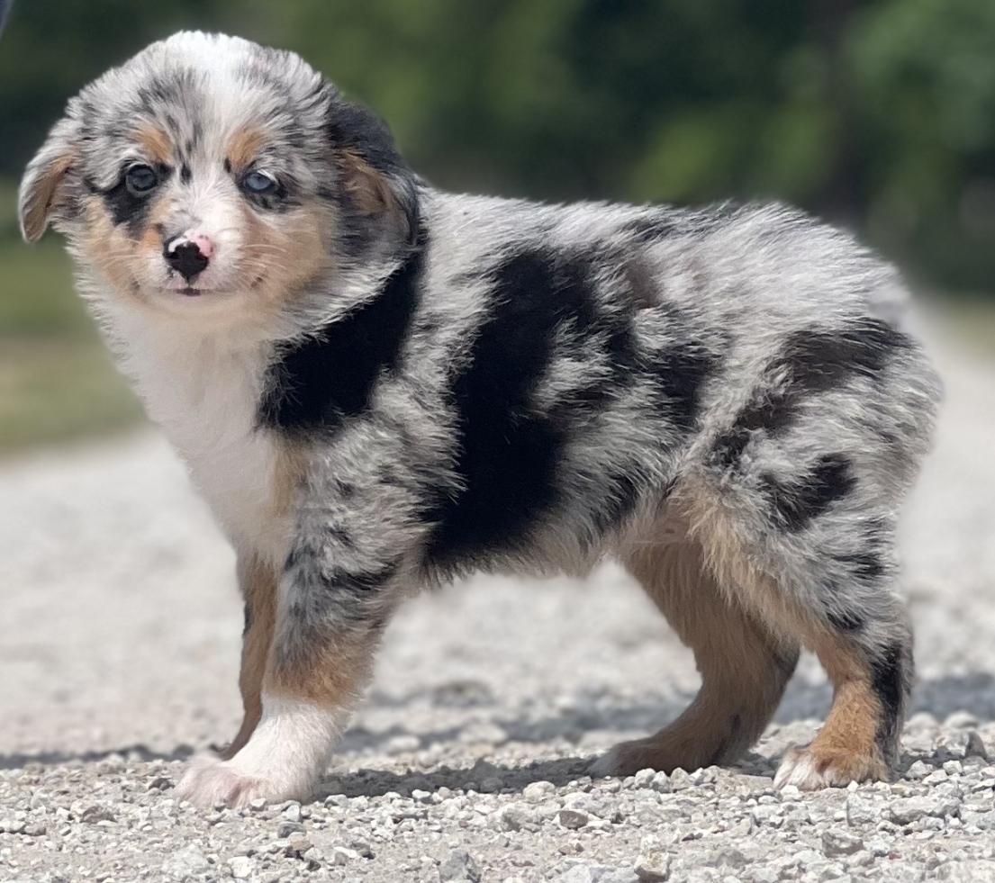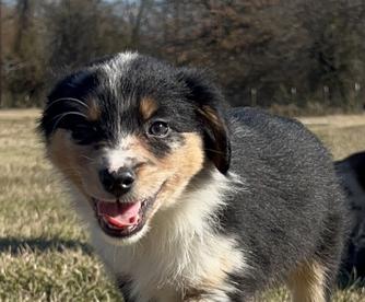 Our Miniature Australian Shepherd puppies include blue merle, black tri, and red merle. Toy Australian Shepherd puppies include black tri, blue merle, red merle, and red tri. Colors will vary depending on the parent dogs.