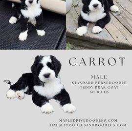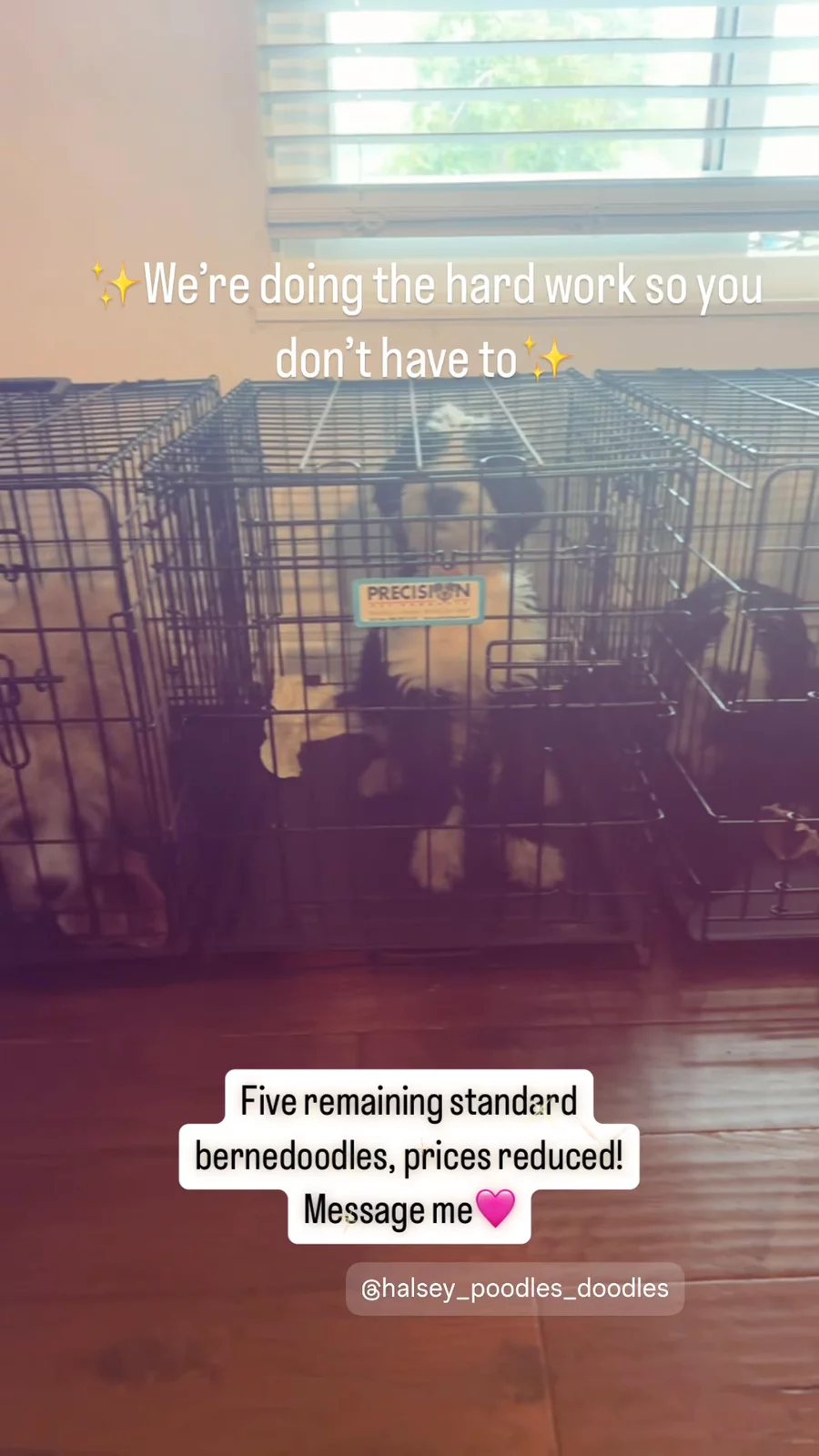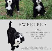 Sweet Pea is our last remaining standard bernedoodle! He is an energetic, intelligent & eager to please boy who craves one on one attention! He is crate trained, comes from titled parents, knows basic commands & is getting fluffier by the day! He is the final standard bernedoodle we will produce for our program for the next 12+ months!