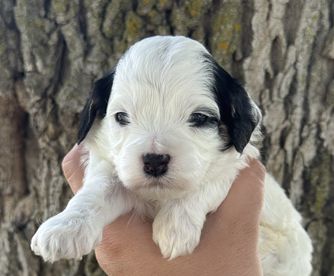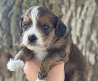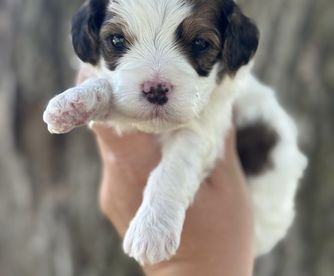 Our Bernedoodle puppies include red, black and white, and tri-color. Cavapoo puppies include white, sable, and black and white. Colors will vary depending on the parent dogs.