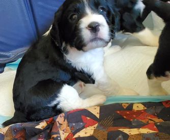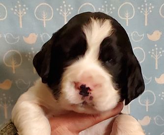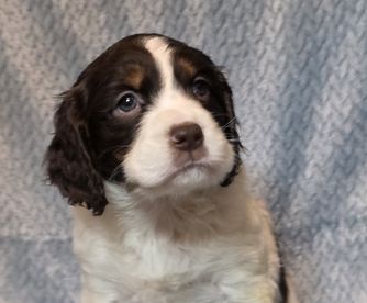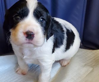 Our puppies include liver white and tan, black white and tan, liver and white, and black and white. Colors will vary depending on the parent dogs.