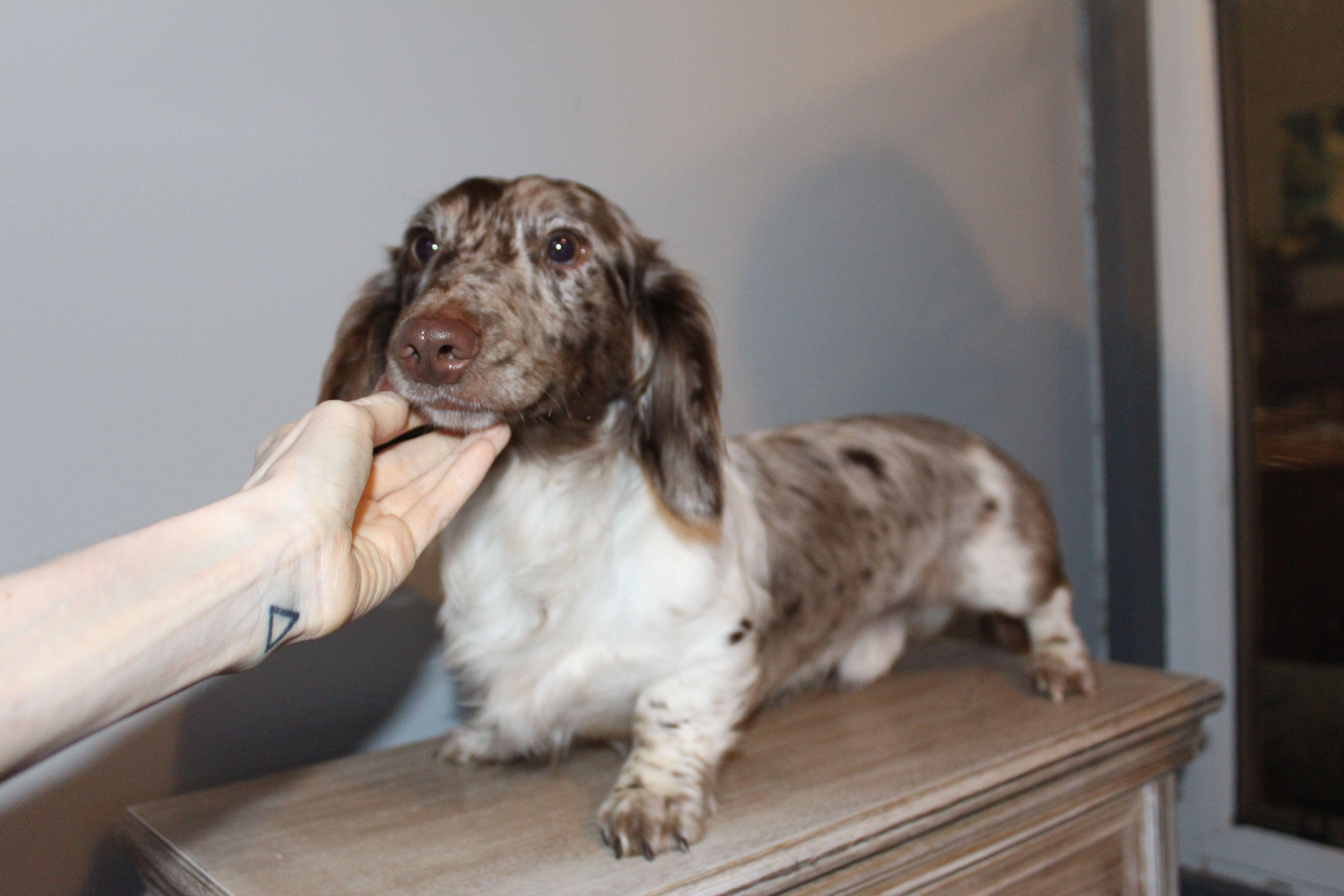 Tansy is a female Dachshund. Carefully selected as a great representative of her breed, Lydia decided to make her part of their program. Lydia has passed Good Dog’s screening process, which involved a review of their breeding practices, environment, and the mental and physical health of their dogs.