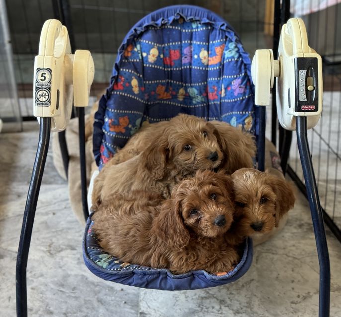Our puppies include caramel, red, apricot, cream, chocolate, black, and tri-color. Colors will vary depending on the parent dogs.