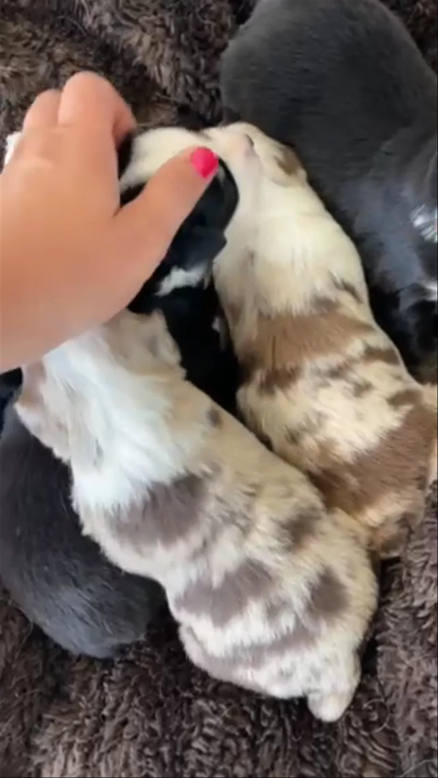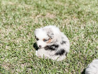 Our dogs are our family. We raise our puppies in our home and on our farm with daily handling. We are veterinary owned and operated and perform thorough genetic and radiographic screenings of all of our breeding dogs. We may be partial, but we have the prettiest mini Aussie puppies around!