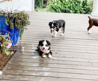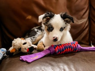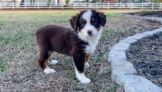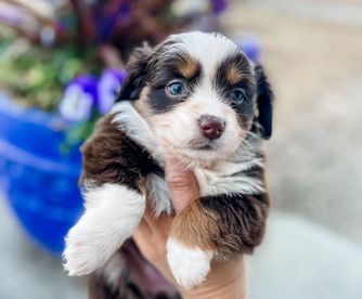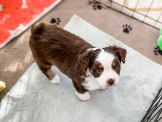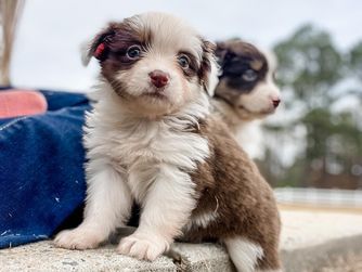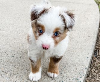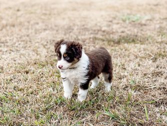 Our Miniature Aussie family started in 2018 with Alex and Allie. We grew our Miniature Aussie family again in 2020 with the addition of Allie’s first born, Ava. We added a gorgeous liver red tri male with hazel eyes to our family in 2022, as our breeding stud.