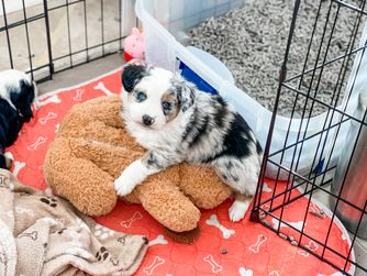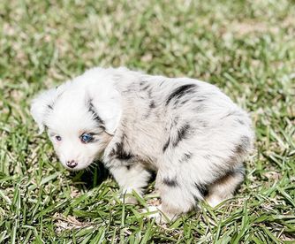 Our puppies are blue merle. Colors will vary depending on the parent dogs.