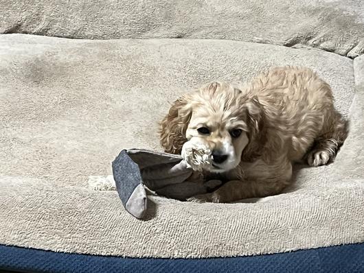 Molly Rae is a female Cocker Spaniel. Carefully selected as a great representative of her breed, Dana decided to make her part of their program. Dana has passed Good Dog’s screening process, which involved a review of their breeding practices, environment, and the mental and physical health of their dogs.