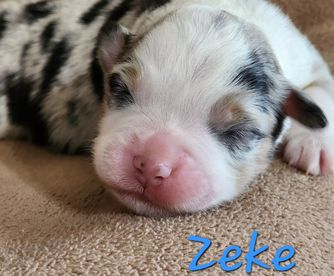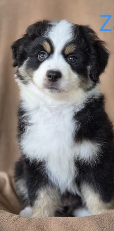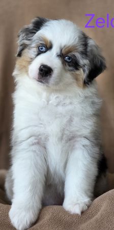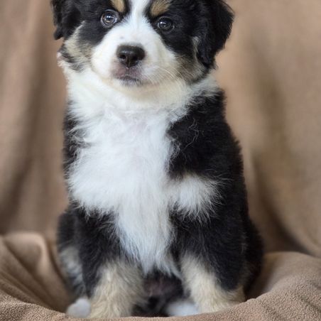 Our Miniature American Shepherd puppies include red tri-color, black tri, red merle, and blue merle. American Hairless Terrier puppies include white and chocolate, chocolate and tan, black, and black and tan. Colors will vary depending on the parent dogs.