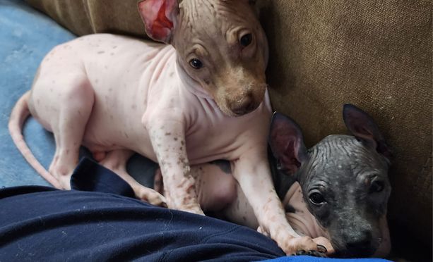American Hairless Terrier puppies have hairless coats. Coat types may vary depending on the parent dogs.