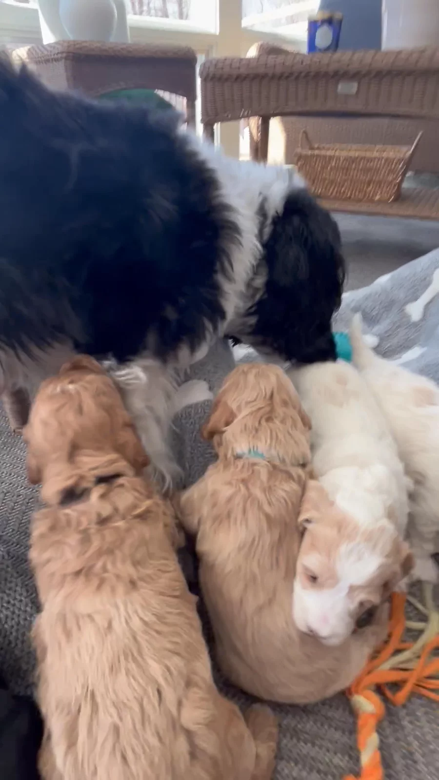 It’s so fun to have our morning coffee and watch the Mama Dogs play with their babies! Wilma is my the mother of these little guys, born on 9-19-25, and currently have 3 available for adoption!