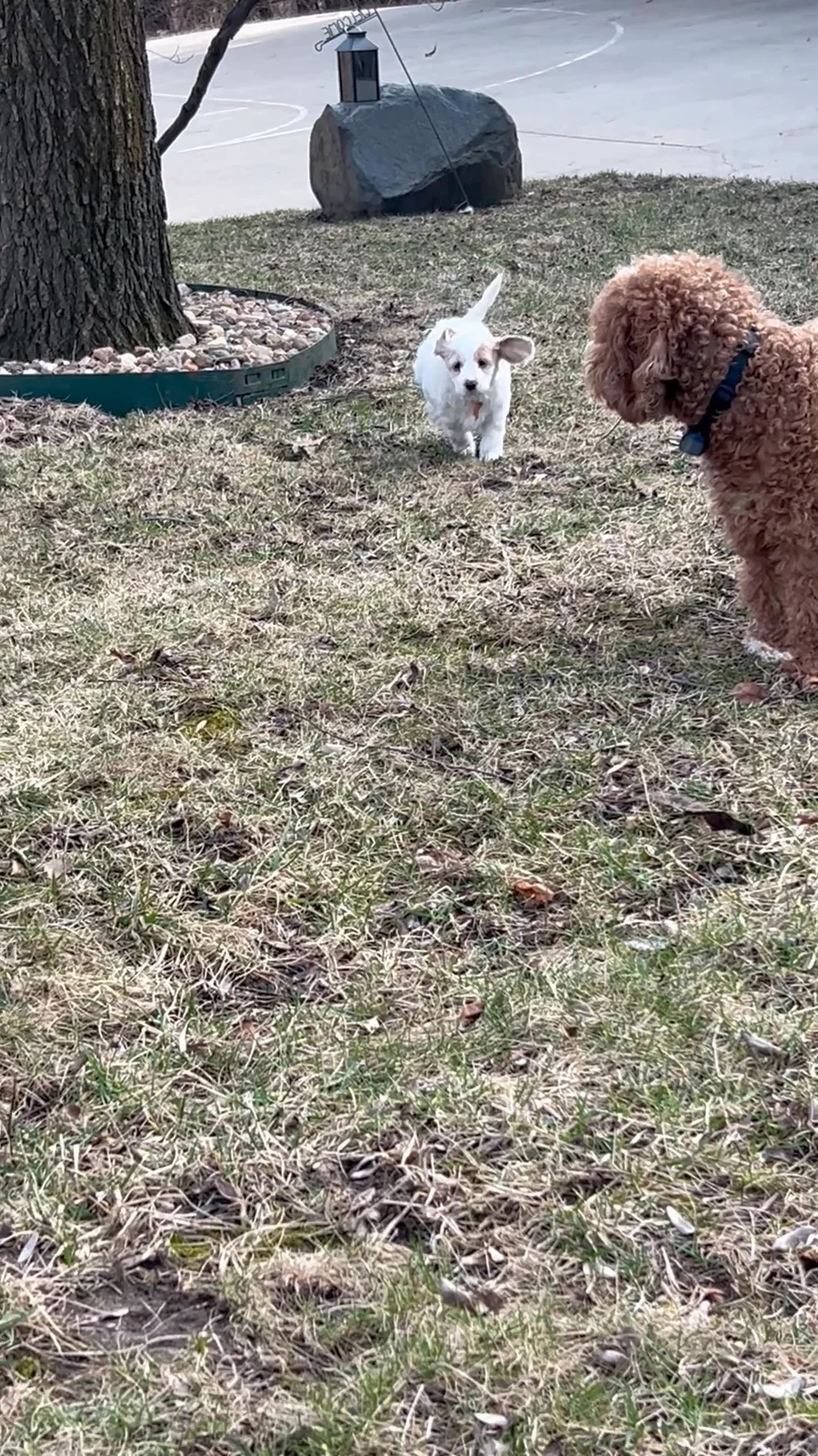 Wilma and Mavericks 9/19/2025 litter of 4th Generation Cockapoo Puppies are doing great! We have started outdoor potty training, and they are 90% trained to go potty on newspapers when in their play area. These handsome 5 guy’s are playful and sweet!