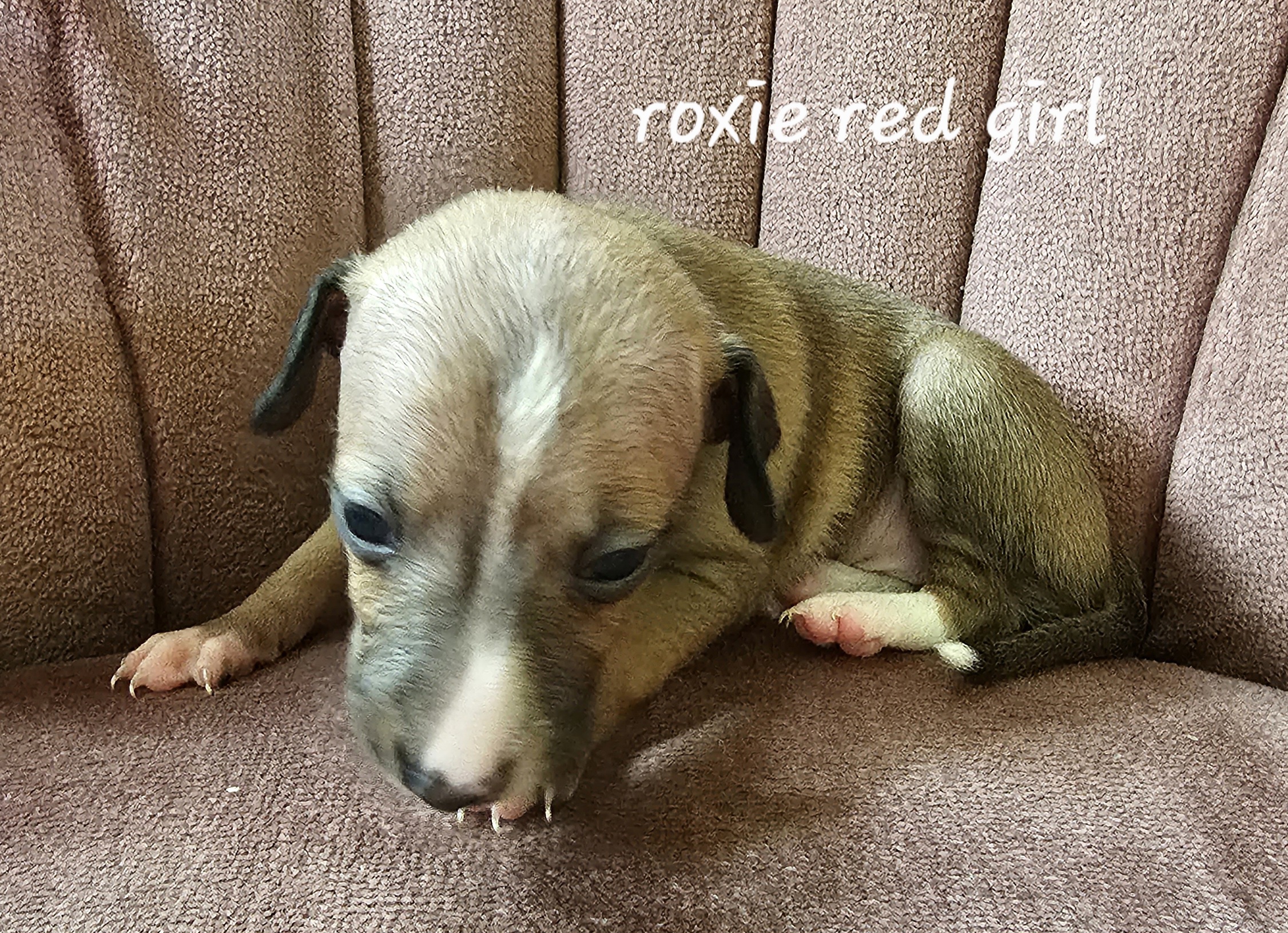 Squiggles is a female Italian Greyhound. Carefully selected as a great representative of her breed, Marcy decided to make her part of their program. Marcy has passed Good Dog’s screening process, which involved a review of their breeding practices, environment, and the mental and physical health of their dogs.