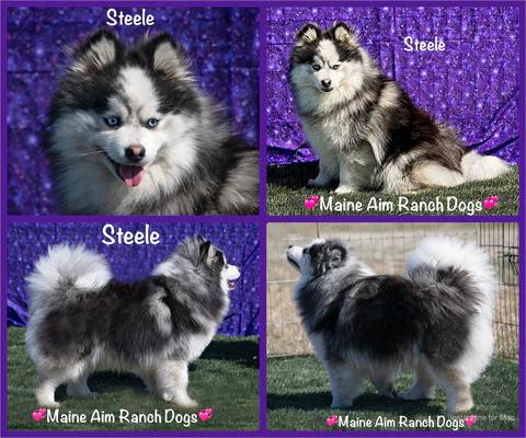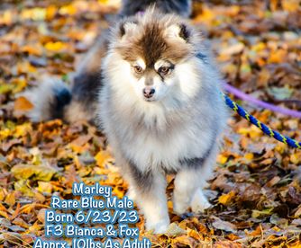 He is an F2X pomsky meaning he has a tiny % of American Eskimo in him to help us achieve the third breed required to move forward to become a registered breed with AKC. We added Steete to our lines from Mile High's program and he is adorable! He is weighing in at 13lbs and most of it is hair...lol