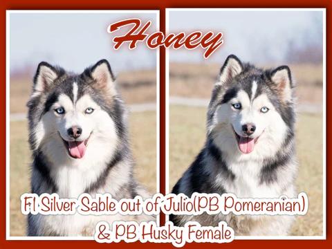 Honey is a female Pomsky. Carefully selected as a great representative of her breed, Madison & Karen decided to make her part of their program. Madison & Karen has passed Good Dog’s screening process, which involved a review of their breeding practices, environment, and the mental and physical health of their dogs.