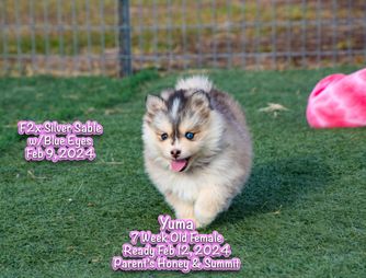 Check out this amazing F4 Pomsky boy named Reagan. He is out of our sweet little Sassy which is out of Lucy and Steele. His dad is Ice Man out of Cricket and Fox. We are so excited to see the babies out of this great pomsky and his future looks bright!