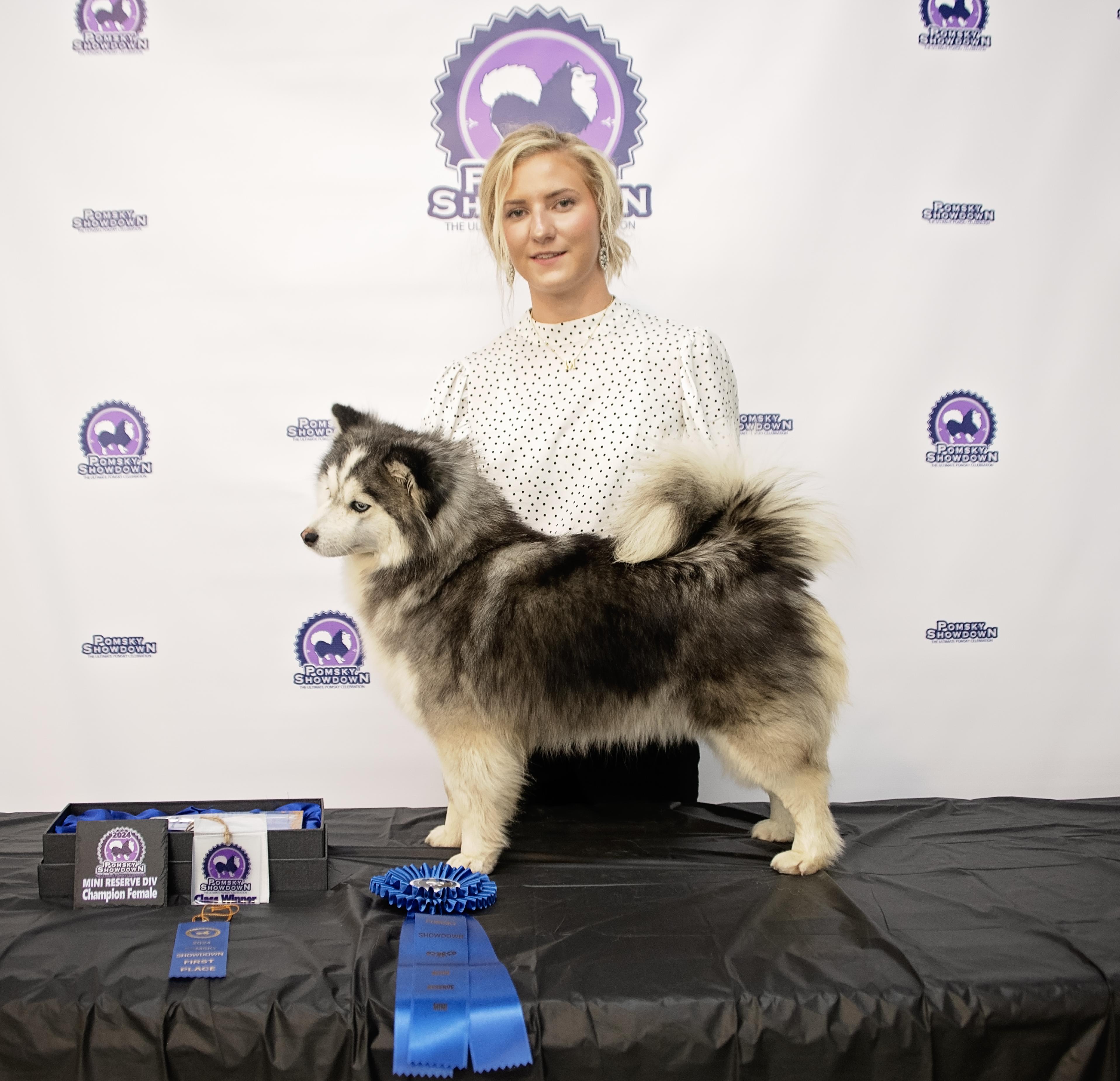 It all started with my first Pomsky Holly which I fell in love with. She is incredible, smart, obedient and loves to learn new tricks. I have some great mentors that have been there since the beginning and answer every question I have. I love to show our Pomskies & have won many titles with them. I look forward to what the future holds and seeing many more people experience the love of Pomskies.