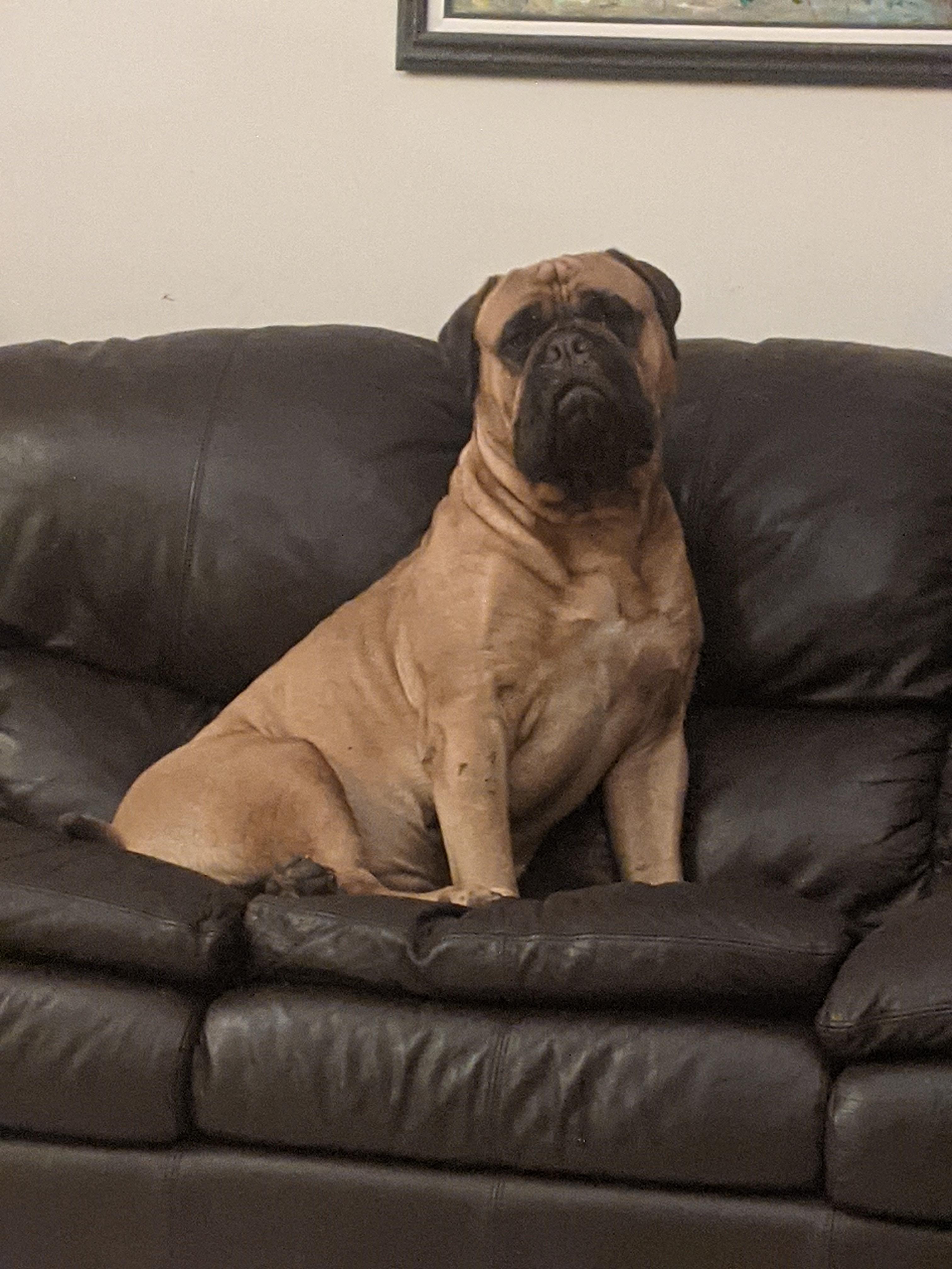 Kai is a male Bullmastiff. Carefully selected as a great representative of his breed, Galina decided to make him part of their program. Galina has passed Good Dog’s screening process, which involved a review of their breeding practices, environment, and the mental and physical health of their dogs.
