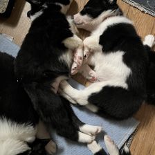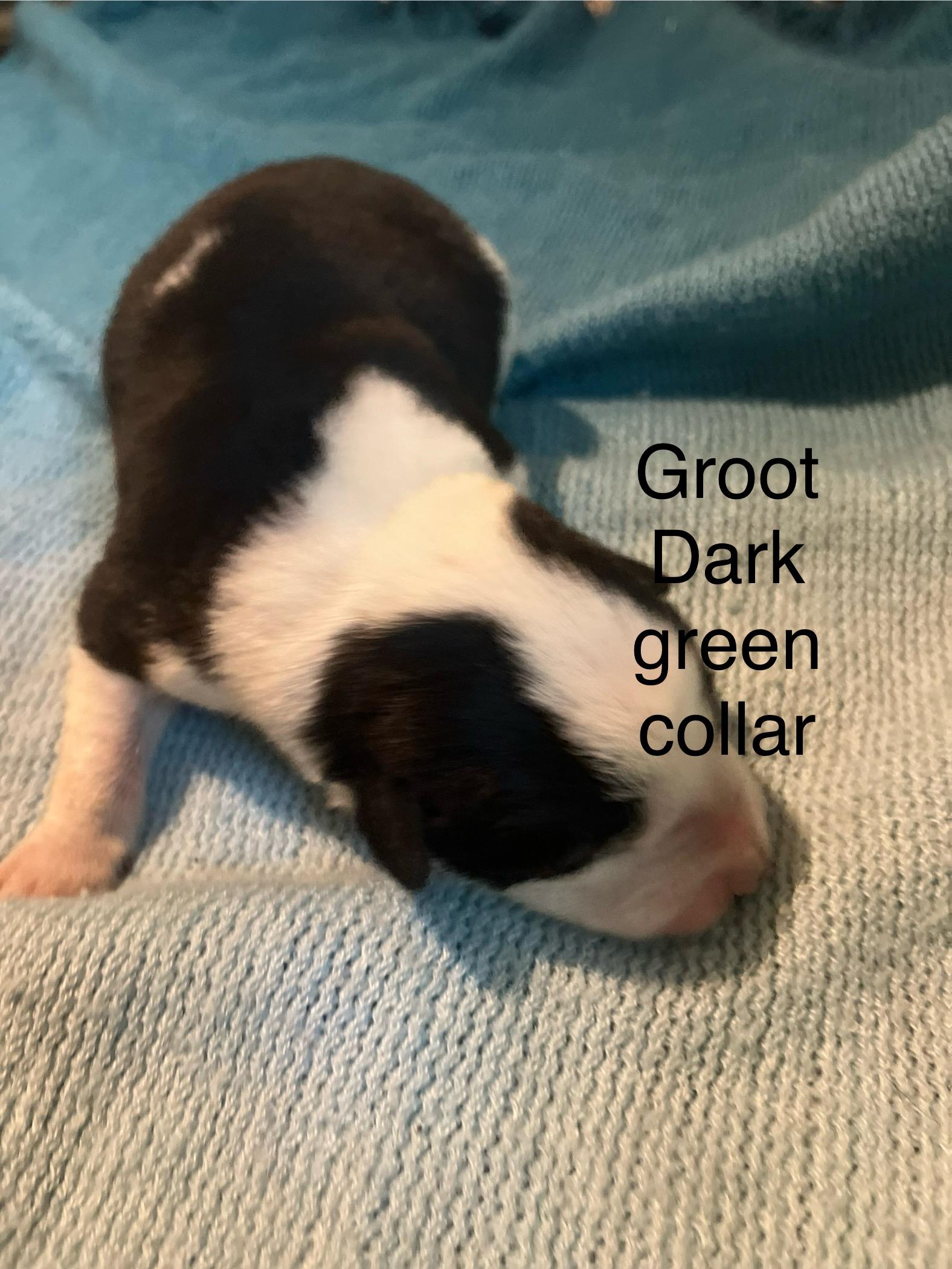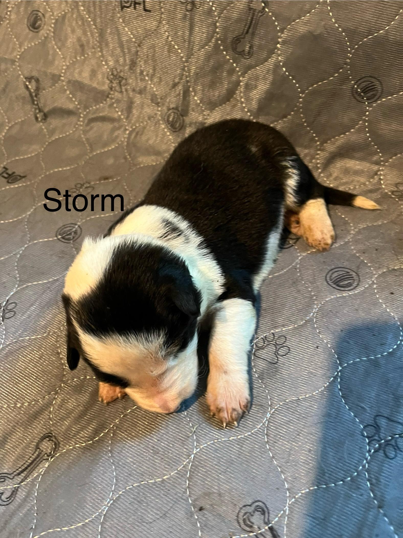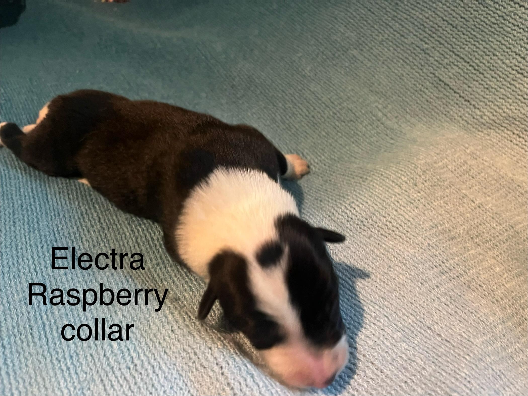 Our puppies are black and white. Colors will vary depending on the parent dogs.
