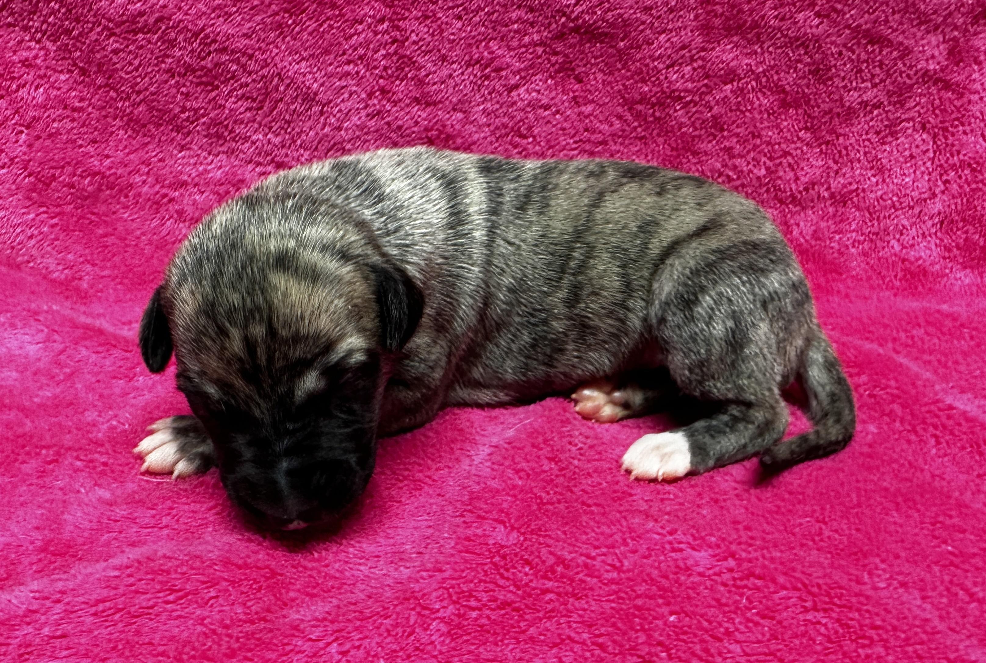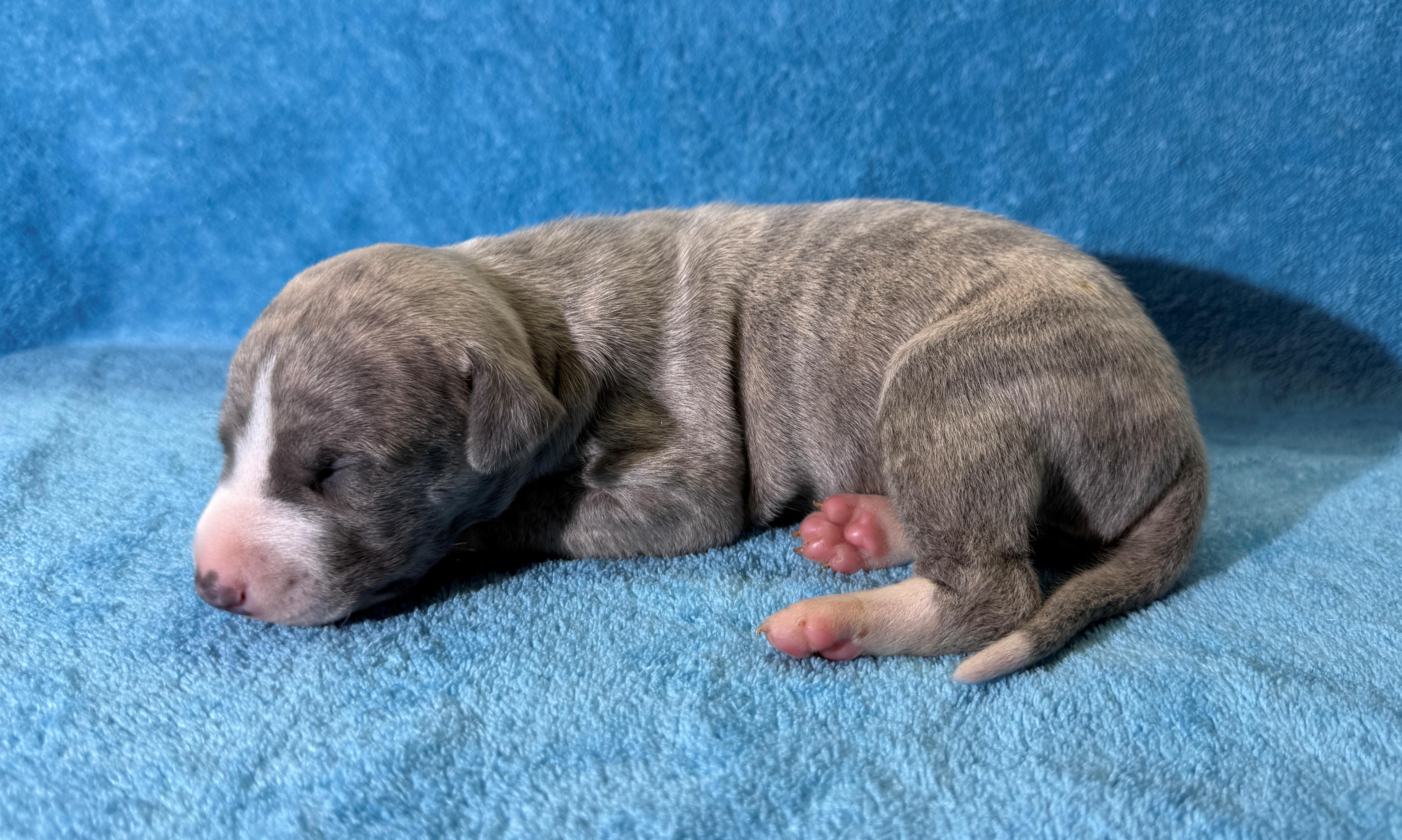 Our Whippet puppies include white and red brindle, white and fawn brindle, white and black, white and blue, blue brindle, red brindle, fawn brindle, black, and blue. Colors will vary depending on the parent dogs.