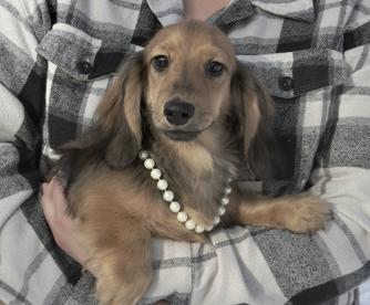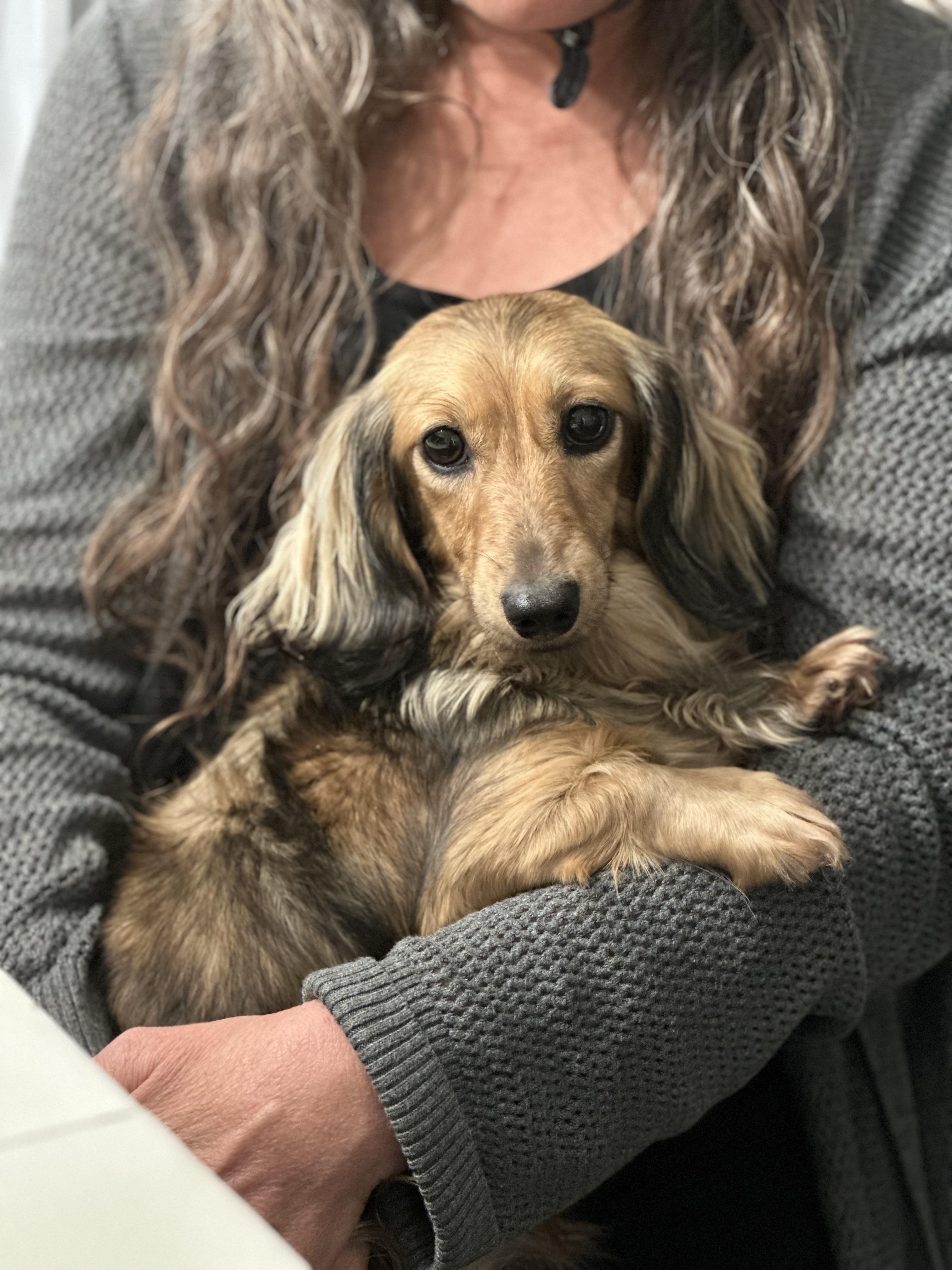 Goldilocks is a female Dachshund. Carefully selected as a great representative of her breed, Mary decided to make her part of their program. Mary has passed Good Dog’s screening process, which involved a review of their breeding practices, environment, and the mental and physical health of their dogs.