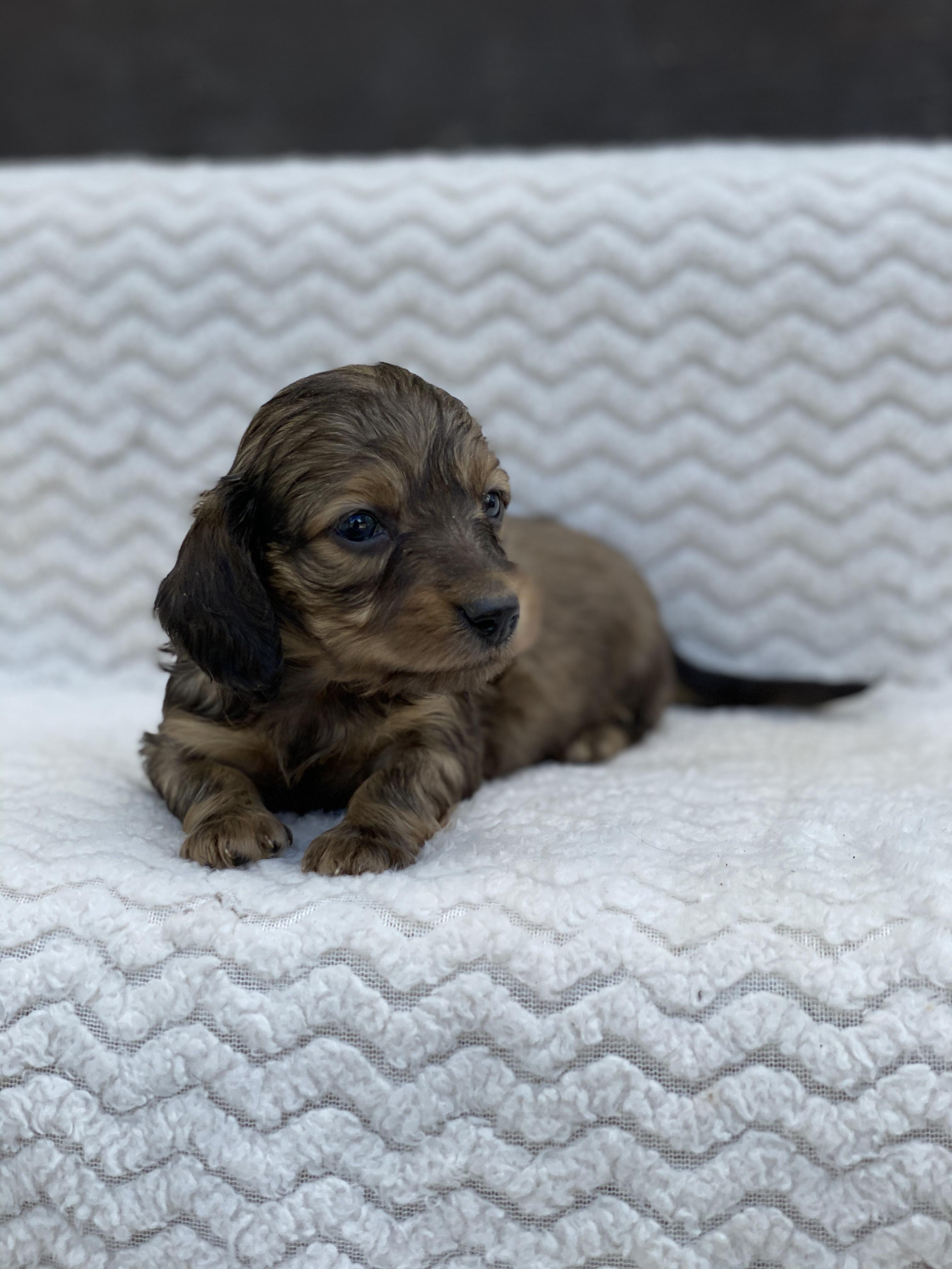 daVinci is a male Dachshund. Carefully selected as a great representative of his breed, Mary decided to make him part of their program. Mary has passed Good Dog’s screening process, which involved a review of their breeding practices, environment, and the mental and physical health of their dogs.