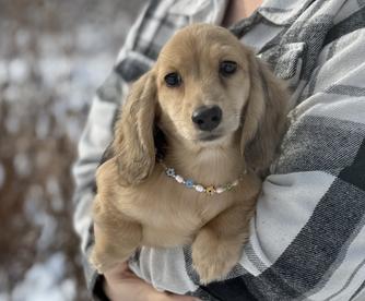 I'm Mary R., the breeder behind Mare-bella Dachshunds located in Crystal, MI. We at Mare-bella Dachshunds raise top quality miniature dachshund puppies with excellent temperaments that make wonderful companions for you, your child, or an elderly friend or parent. The longhaired red line dachshunds are raised by my sister Natalie at her farm and the English Creams by myself here at mine. We take the utmost care of each and every one. It is our earnest desire that each pup finds the most loving and caring parent and home to live out the rest of his life with.