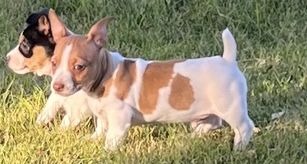 Our Teddy Roosevelt Terrier puppies include sable and white, chocolate and white, and black and white. Colors will vary depending on the parent dogs.