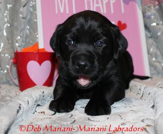 Our puppies include black, chocolate, and yellow. Colors will vary depending on the parent dogs.