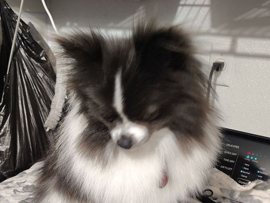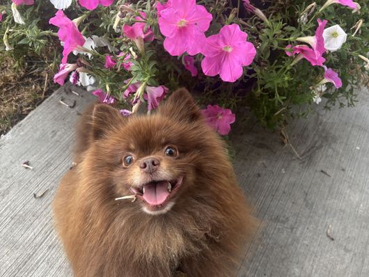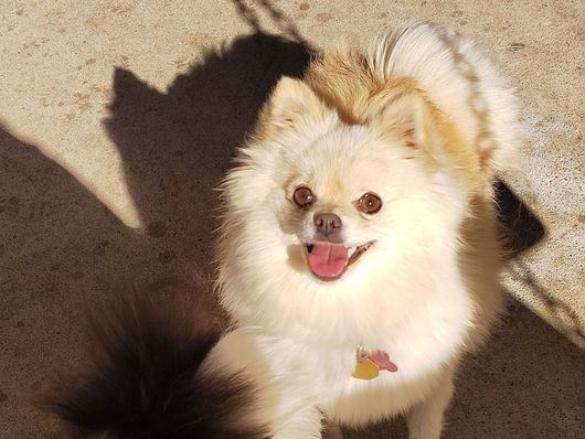 Pookie is a beautiful parti pom her personality is very chill and loving