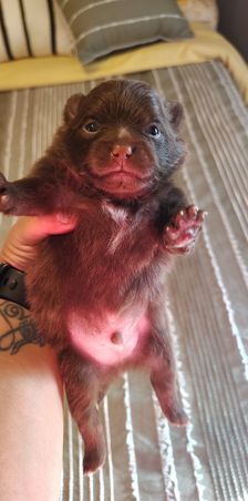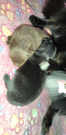 Frankie is 2 weeks old and a chunky monkey lol opened his eyes today looks like he may have white on his face as well