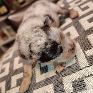 Mercedes is a Beautiful merle with tan points