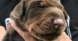 Our puppies include black and rust, fawn (isabella) and rust, and red and rust. Colors will vary depending on the parent dogs.
