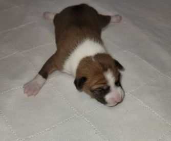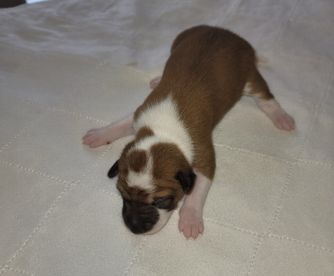 Our puppies include tri-color, black brindle and white, black and white, and red and white. Colors will vary depending on the parent dogs.