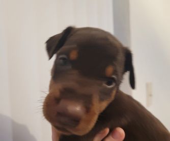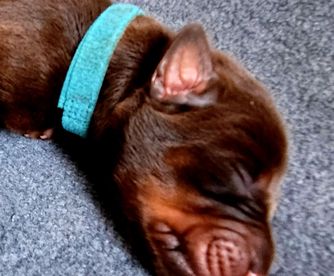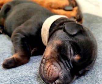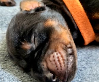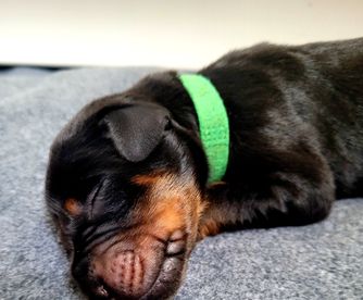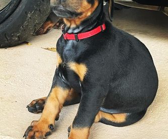Our puppies include black and rust and red and rust. Colors will vary depending on the parent dogs.
