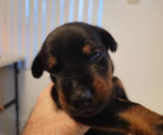 “Puppies are sold as pets. You receive AKC limited registration, lifetime breeder support, deworming, tail docking, microchip, veterinarian health certificate, age appropriate vaccines, breeder health guarantee. Deposit is refundable, only if we cannot provide you with a puppy. If we cannot provide you with a puppy, the deposit may be transferred to the following litter.”