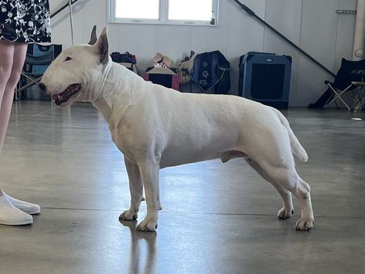 Stu boo is my best boy! He is refered to from many judges as the calmest bull terrier they ever met. He loves everyone and is so gentle. He is a total mommas boy.