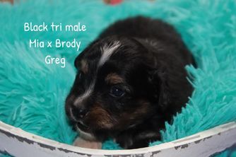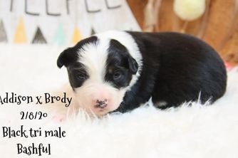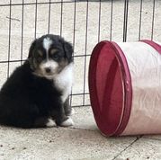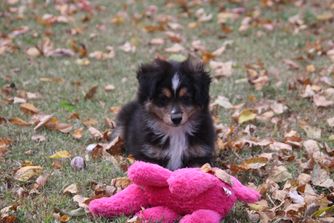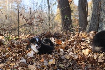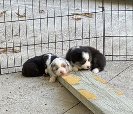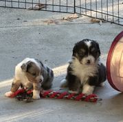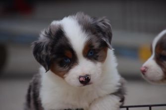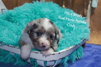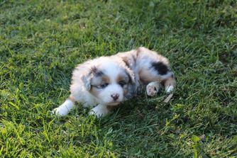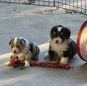 Our Miniature American Shepherd puppies include black, red merle, and blue merle. Miniature Australian Shepherd puppies are red merle. Colors will vary depending on the parent dogs.
