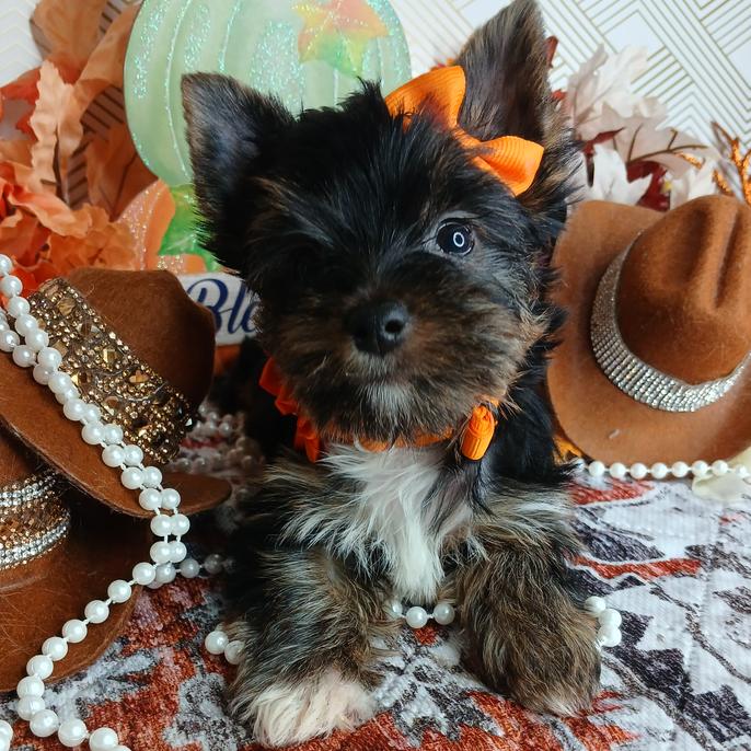 We offer Traditional, Chocolate, Platinum Blonde, Sable, Blonde, Parti, and Black(Kb) Yorkshire Terriers.