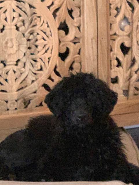 Piper is a female Portuguese Water Dog. Carefully selected as a great representative of her breed, Linda decided to make her part of their program. Linda has passed Good Dog’s screening process, which involved a review of their breeding practices, environment, and the mental and physical health of their dogs.