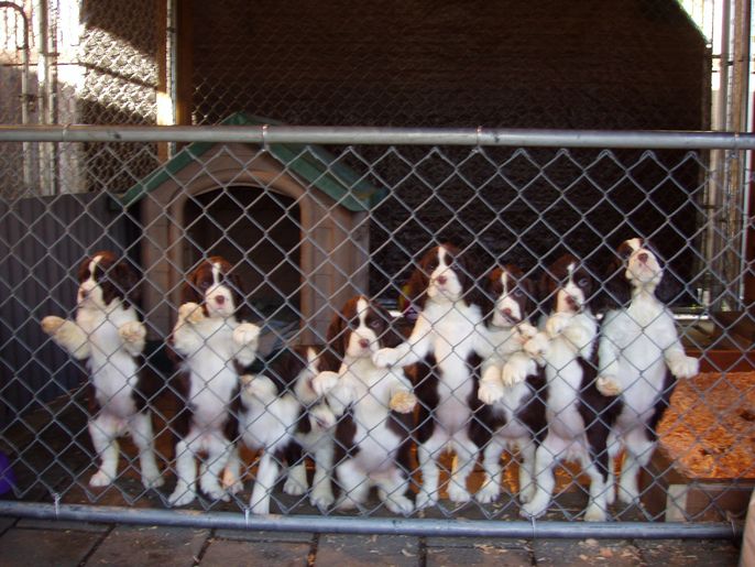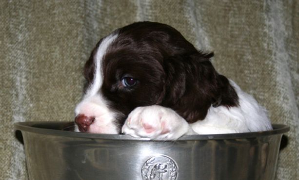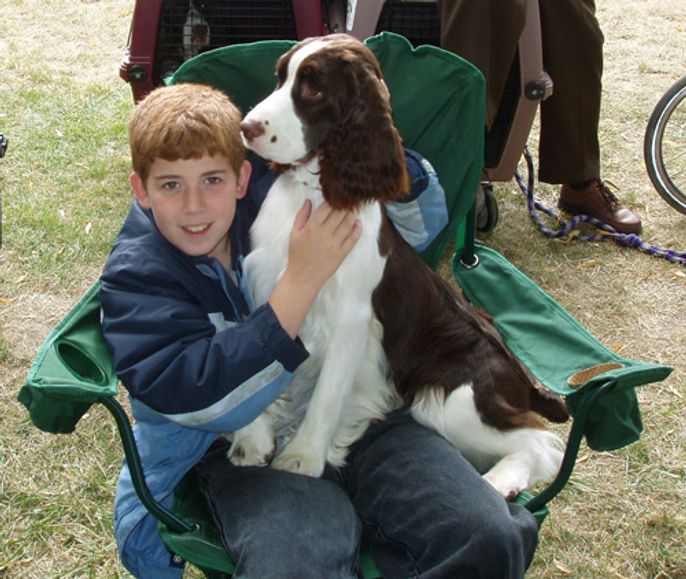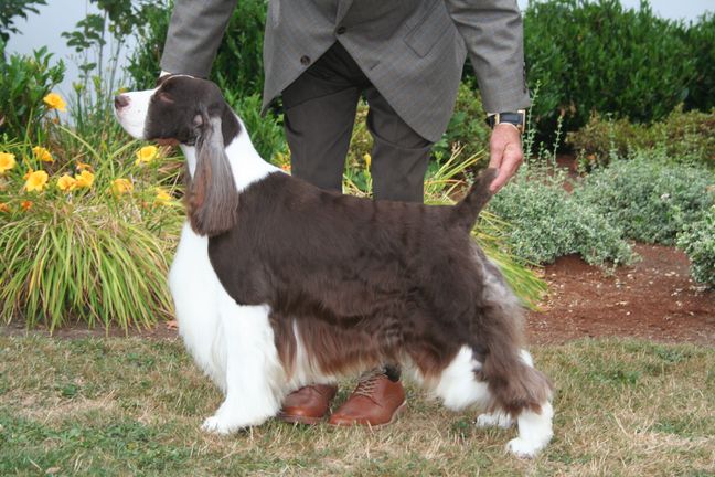 Trixie, our foundation bitch, finished her a championship with 5 major wins as a young girl. She went on to become the top three Springer bitches in 2002 and 2003. She was Best Of Opposite Sex in both the ESSFTA and CKC National Specialties in 2002. She also won Award Of Merit at Westminster Kennel Club Show with many Best Of Breeds. Her first litter was 9 bitches we finished 7 out of 9 and on from there.