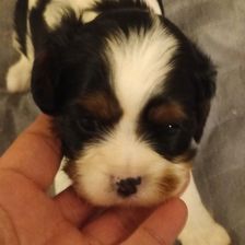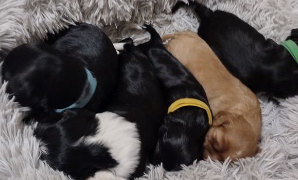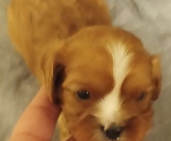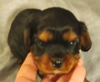 Cavalier puppies are 2 weeks old