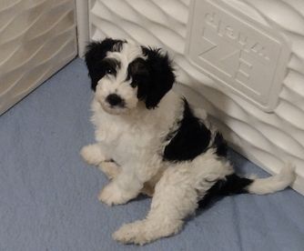 Our Cavalier King Charles Spaniel puppies include blenheim, ruby, tri-color, and black and tan. Cavapoo puppies include merle, black and white, brown, tri-color, and black and tan. Poodle puppies include black and cream. Colors will vary depending on the parent dogs.