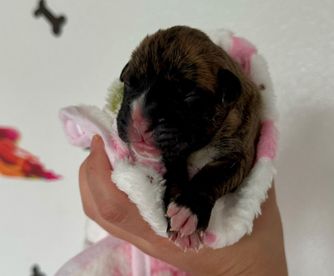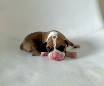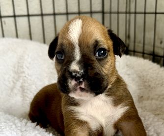 Our puppies include fawn, brindle, and white. Colors will vary depending on the parent dogs.
