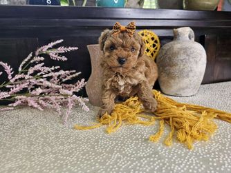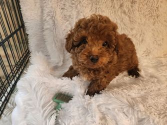 Our puppies include apricot and red. Colors will vary depending on the parent dogs.