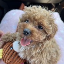Yes, Poodles of Martin’s Heart is AMAZING! Stephanie Martin is the exceptional owner and responsible for raising the sweetest red toy poodle puppies. Our new baby is Poppy.